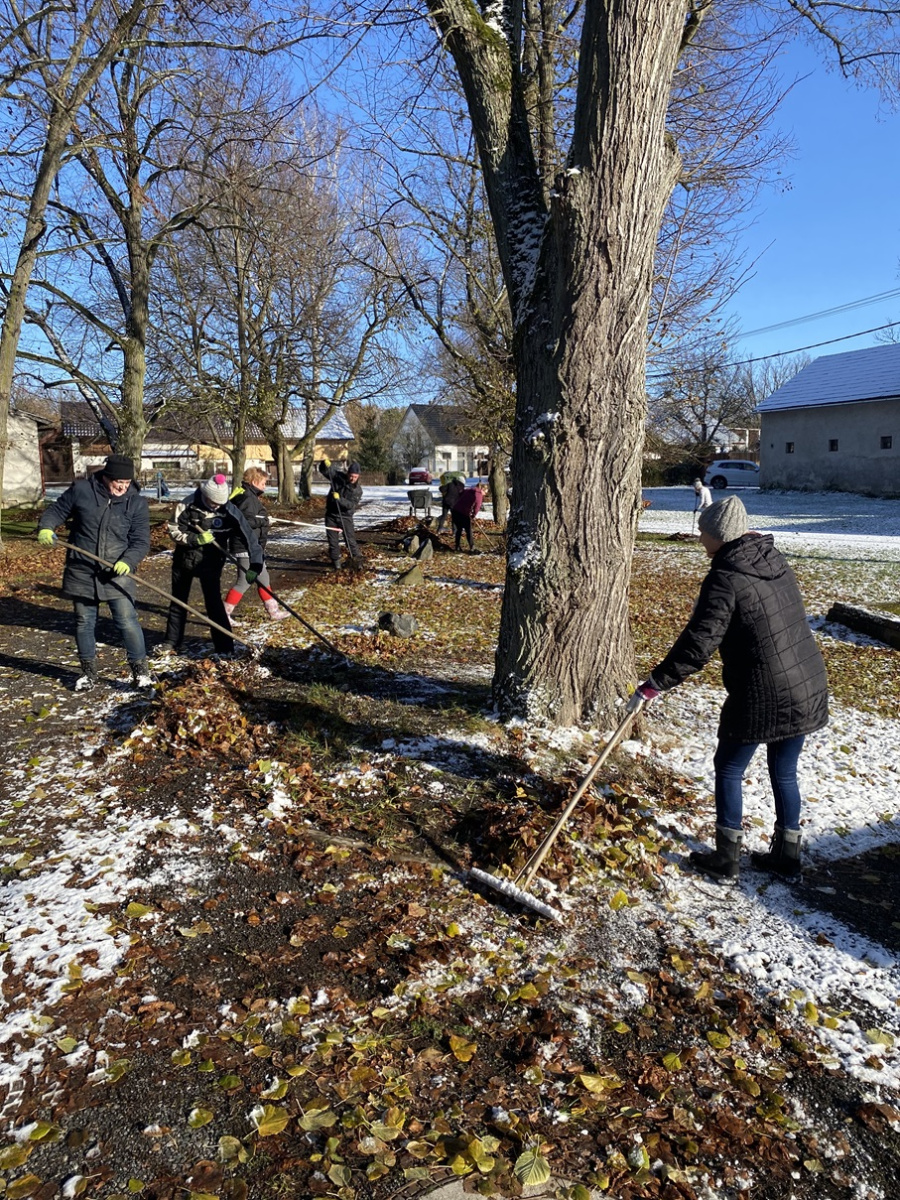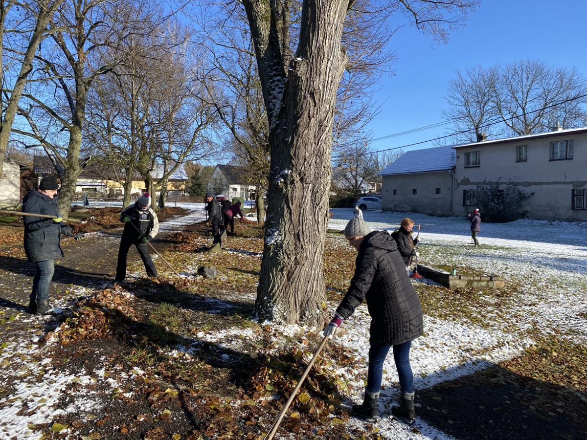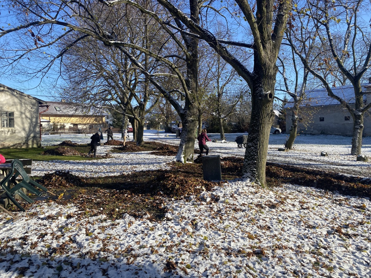 Brigáda v Maníkovicích – hrabání listí