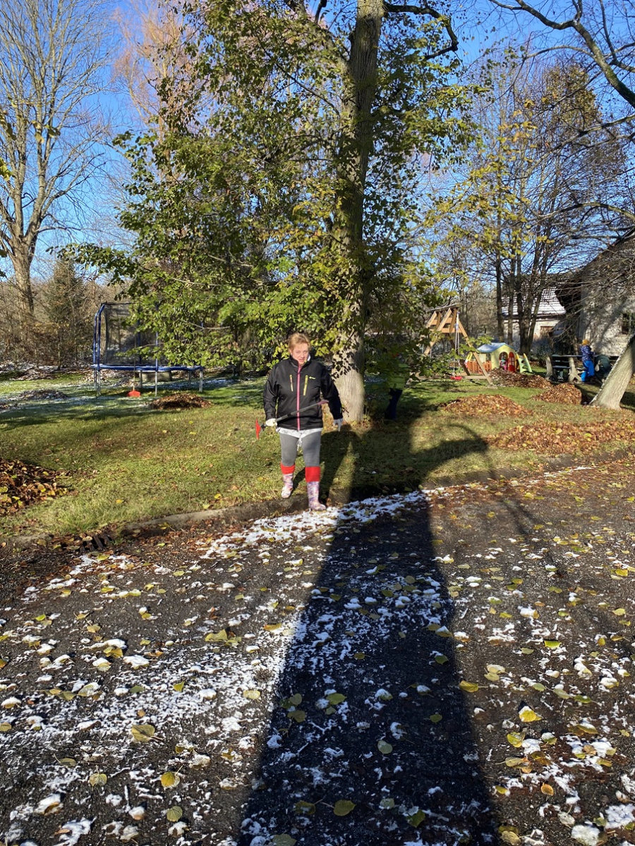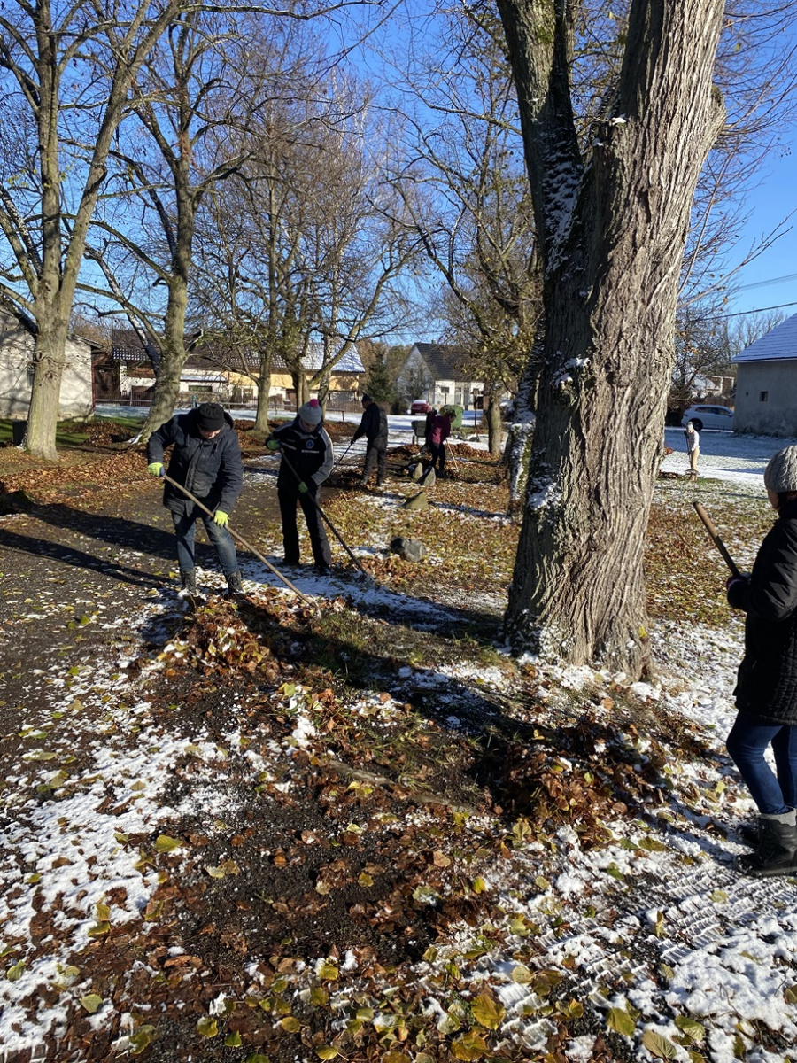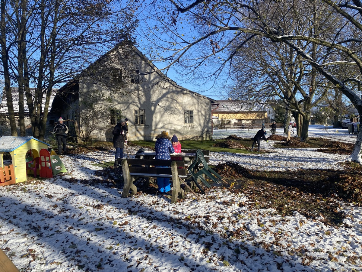 Brigáda v Maníkovicích – hrabání listí
